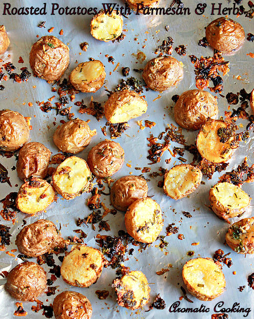 Fried potatoes, mashed potatoes, potato curry, give us potatoes in any form, we like them at home, so then, when I made this Roasted Potatoes With Parmesan And Herbs, we simply loved it. The best thing about this recipe is, it's so simple, no need to even peel the potatoes, just mix them with the herbs and cheese and then everything is done in the oven. After about 45 minutes, the potatoes turn out crispy on the outside and soft on the inside and the flavors from the herbs and cheese is awesome..
